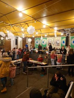 Zusätzlich zu dem Kulturprogramm gab es zahlreiche Stände, die für Unterhaltung und köstliche Verpflegung sorgten. Die Weihnachtsbasargäste konnten an vielzähligen Mitmachaktionen teilnehmen wie z.B. Karaoke im Musikraum, Basteln im Forum, Kinderschminken und Glitzertattoos. Wer Lust auf neue Nägel hatte, konnte sich vor den Chemieräumen welche lackieren lassen. In den Chemieräumen wurden Experimente gezeigt, bei denen alle großen und kleinen Gäste auch selbst mitmachen durften.