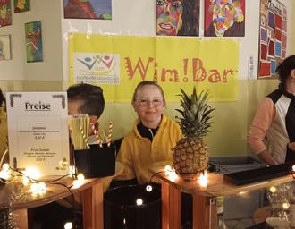 Neben herzhaften Speisen wurden auch süße Leckereien wie Waffeln, Popcorn, „Schnucketüten“ und Zuckerwatte angeboten. Gleichzeitig lief das Kaffee- und Kuchenbuffet, das sich auch großer Beliebtheit freute. Die erworbenen Köstlichkeiten konnten gemütlich an den liebevoll geschmückten Tischen in der Schulmensa genossen werden. Auch die über die Schulmauern hinaus bekannte Wim!Bar hatte einen Stand auf dem Weihnachtsbasar und bot ihre einladenden alkoholfreien Cocktails an. Darüber hinaus gab es aber auch Kinderpunsch und erfrischende Softdrinks. Um 18 Uhr verabschiedeten sich die alle Gäste nach einem vielfältigen und sehr erfolgreichem Weihnachtsbasar in der KGS Gieboldehausen.