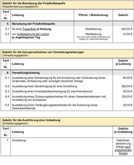 2. Gebühr für das Ausheben und Schließen einer Grabstelle – Bestattungsgebühr (Gebührentarif-Nr.: 3.1 bis 4.2)