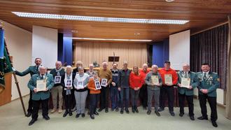 Im Rahmen der Versammlung wurden zahlreiche Mitglieder für ihre langjährige Treue und Verdienste geehrt. Besonders hervorzuheben ist die Ehrung für 25 Jahre Mitgliedschaft, die Ulrich Böhme, Nicolas Döhring, Andreas Hinz, Markus Kossack, Carmen Dornieden, Bernd Sander, Iris Schmidt und Uwe Sommer zuteilwurde. Für 40 Jahre treue Mitgliedschaft erhielten Erika Bode, Verena Engelhardt, Jürgen und Klara Kopp, Gerhard Nickel jun., Maria Sander, Jörg Schmidt sowie Gudrun und Hennes Wosmiak ihre Auszeichnung. Hans-Adolf Kurth und Gerhard Macke jun. wurden für 50 Jahre Mitgliedschaft geehrt, und Andreas Hartmann erhielt eine Auszeichnung für 60 Jahre Mitgliedschaft. Willi Rexhausen, seit 70 Jahren Mitglied der Schützenbruderschaft, wurde ein geschnitzter St. Sebastian überreicht. Allen geehrten wurde an dieser Stelle der Dank für ihre langjährige Treue zur Schützenbruderschaft ausgesprochen. In diesem Jahr wurden ebenfalls die Ehrungen für den Spielmannszug in der Generalversammlung vorgenommen. Katharina Stitz und Carmen Dornieden wurden für 20 Jahre aktive Teilnahme am Vereinsleben geehrt. Gudrun Wosmiak sowie Klara und Jürgen Kopp erhielten für 40-jährige Treue die goldene Ehrennadel.
