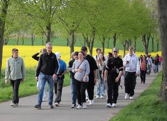 Unter dem Motto "Friede sei mit euch!" startete der Hildesheimer Bischof Dr. Heiner Wilmer SCJ zu seiner ersten diesjährigen Pilgertour mit Jugendlichen und jungen Erwachsenen im Alter zwischen 13 und 30 Jahren am Sonntagnachmittag, den 15. April 2024, um 15.00 Uhr vom Pfarrheim Gieboldehausen zum Höherberg.