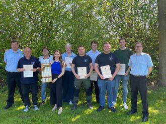 Neben der vielen Ehrungen wurden auch Beförderungen ausgesprochen: Nils Knöchelmann wurde zum Oberfeuerwehrmann befördert. Nick Rudolph, Tim Rudolph, Jannes Dittrich und Noam von Zwehl wurden zum Hauptfeuerwehrmann und Stephan Rudolph zum Löschmeister befördert.