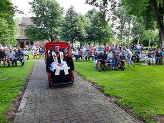 Schönes Wetter begleitete die Fahrradfahrerinnen und Fahrradfahrer am vergangenen Sonntag auf ihrem Weg nach Germershausen. Die Malteser aus Duderstadt kamen sogar mit vier Rikschas zur Fahrradwallfahrt. Auch Propst Thomas Berkefeld reiste zum Freialtar auf der Wallfahrtswiese per Rikscha an.