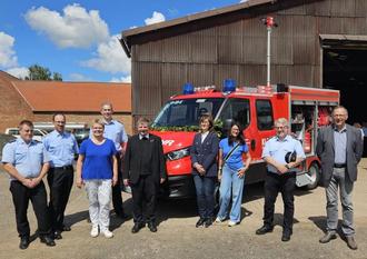 Das Engagement der Ortsfeuerwehr sowohl im Beschaffungsprozess als auch nach Abholung des Fahrzeugs und Bestückung mit den Bestandskomponenten wurde von Bürgermeisterin Hose und auch von Gemeindebrandmeister Nienstedt gelobt.