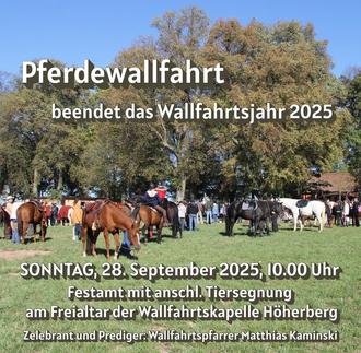 Mit der Pferdewallfahrt endet auch das diesjährige Wallfahrtsjahr auf dem Höherberg. Alle Gläubigen und Pferdefreunde aus nah und fern sind hierzu herzlich eingeladen!