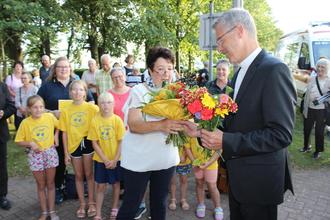 Nach seiner Ankunft wurde Bischof Heiner mit Liedbeiträgen von den „Pfiffigen Orgelpfeiffen“ aus Bodensee begrüßt. Dem folgten Willkommensgrüße von der Pfarrgemeinderatsvorsitzenden Walburga Fuchs aus Bodensee und von Bürgermeister Thorsten Freiberg aus Wollbrandshausen.