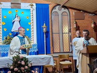 „Sie sind die Schätze dieses Berges. Danke, dass Sie gekommen sind“. Im Namen der Pfarrgemeinde St. Laurentius und der vielen anwesenden Gläubigen begrüßte Pfarrer Matthias Kaminski den Diözesanbischof Dr. Heiner Wilmer SCJ und hieß ihn herzlich willkommen.