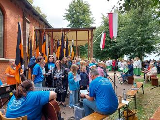 Begonnen wurde um 11.00 Uhr mit einem sehr gut besuchten Festgottesdienst am Freialtar mit Bezirkspräses und Pfarrer Matthias Kaminski als Zelebrant und Prediger.