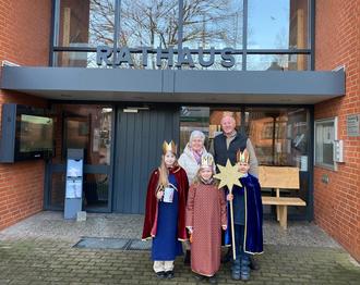 Am 4. Januar besuchten die Sternsinger*innen der katholischen St.-Marien-Gemeinde gemeinsam mit ihrer Begleitung, Ilka Siemsglüß, das Rathaus. Dort wurden sie von Bürgermeister Dr. Jens Bülthuis und den Mitarbeitenden der Verwaltung herzlich empfangen.