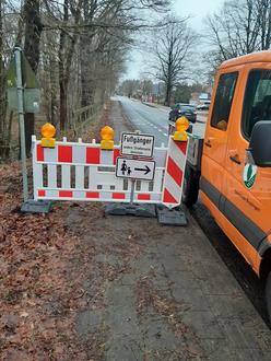 Teilweise Sperrung des Gehweges an der Borsteler Straße.