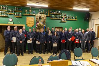 Geehrte und Beförderte der Ortswehr Behringen mit diversen Gästen.