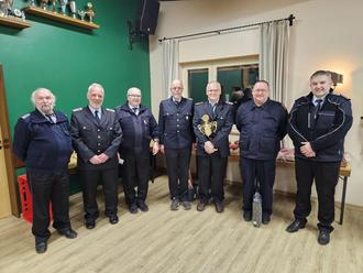 Von links nach rechts: Heinz-Georg Indorf (Behringen), stellvertretender Ortsbrandmeister Behringen Frank Willenbockel, Ehrenortsbrandmeister Behringen Hans-Helmut Röhrs, Welf Klaer, Christian Neumann, Stephan Rabe, Ortsbrandmeister Behringen Thorben Röhrs.
