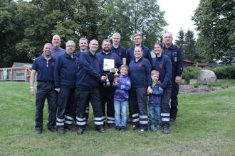Das Foto zeigt die Staffel Hörpel-Volkwardingen mit dem Ortsbrandmeister Hörpel-Volkwardingen Thorsten Witthöft, stellvertretender Ortsbrandmeister Karsten Beyer, sowie Gemeindebrandmeister Carsten Renk und seinen Stellvertreter Ralf Siemsglüß.