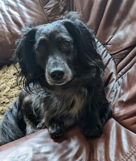 Langhaardackel Lucky sucht ein neues Zuhause.