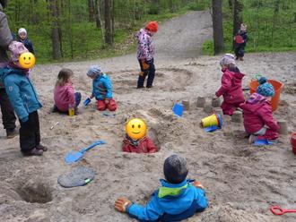Nach einem kurzen, gemeinsamen Morgenkreis zogen wir dann auch schon Richtung Sandhügel los. Hier wurde erst einmal gleich gefrühstückt, bevor wir dann gestärkt zum Toben, Buddeln usw. los stürmen konnten.