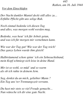 Die Heimatpflegerin Irmlinde Florian stellt wieder ein Gedicht ihrer Mutter vor, dass diese vor 80 Jahren als Feldpost an ihren Mann Horst Odernheimer nach Winniza in Ostpreußen verschickt hatte.