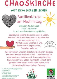 | Kinderstunde (1.- 4. Schuljahr): | Mittwoch, 16.30 – 18.00 Uhr Auferstehungskirche |