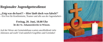 | Jugendgruppe (ab 14 Jahren): | Dienstag, 19.30 Uhr Auferstehungskirche |