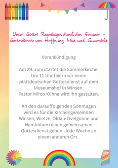 | 11.00 Uhr | Sommerkirche Museumshof Winsen (Pastor Kühne) |