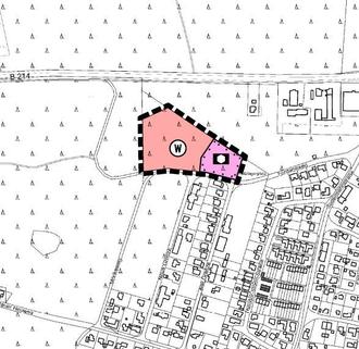 Geltungsbereich der 11. Änderung des Flächennuntzungsplanes (hier inkl. geplanter Änderung; Kartengrundlage: Verkleinerter Auszug aus der Amtlichen Karte 1 : 5.000 (AK5))