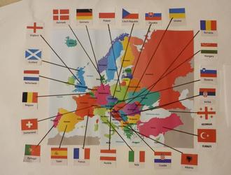 Das haben wir uns dann mal etwas genauer angeschaut. Als erstes haben wir uns die ganzen Länder auf der Europakarte angeschaut. Wo kommen die anderen Mannschaften her. Niederlande, England, Türkei, Kroatien und Spanien waren dem ein oder anderen Kind noch vom letzten Urlaub bekannt. Als nächstes beschäftigten wir uns mit den Flaggen und stellten fest, manche sehen sich ähnlich, haben die gleichen Farben, nur in einer anderen Reihenfolge, aber jedes Land hat eine eigene Flagge. Auch wir haben unseren Flur und einen kleinen Bereich des Außengeländes dekoriert. Leider fand irgendjemand unsere Deutschlandflaggen so toll, dass diese über das Wochenende entwendet wurden. Das macht uns alle sehr traurig. Insgesamt verschwanden 4 Flaggen.