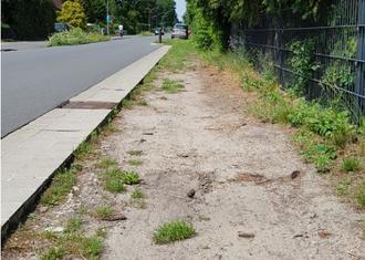 Bild 1: durch Parken zerstörter Seitenraum, ein unschönes Erscheinungsbild und das Regenwasser kann hier nur schlecht versickern