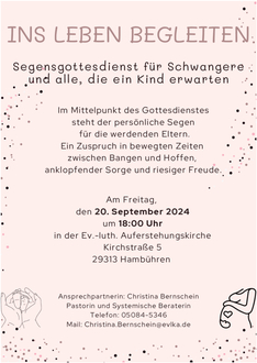 Gesprächskreis: Mittwoch, einmal im Monat um 20.00 Uhr im Gemeindesaal. Nächstes Treffen: 30. Oktober 2024