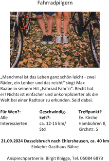 Bitte bei Waltraut Siewerin unter 05084-400229 anmelden