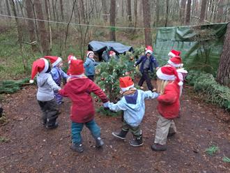Wie in jedem Jahr, kurz vor den Weihnachtsferien, fand bei den Füchsen eine kleine Weihnachtsfeier statt. Nur dieses Mal gab es den klitzekleinen Unterschied, dass die Feier nicht am Vormittag stattfand, sondern erstmals am späten Nachmittag. So trafen sich Eltern und Füchse kurz vor dem Dunkel werden tief im Wald am Fuchsbau.