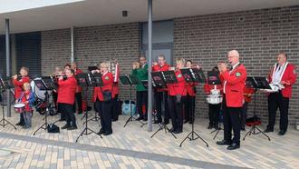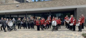 Der Spielmannszug Hambühren e. V. spielt vor dem Hölty-Gymnasium