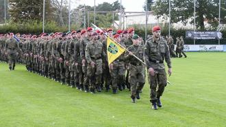 Ein ungewöhnliches Bild ergab sich auf dem Rasen des SV Hambühren. Entgegen der regelkonformen 22 Feldspieler inklusive Torwart musste das Grün knapp 300 Personen tragen, die zu allem Überfluss auch noch gleich angezogen waren. In Reih‘ und Glied angetreten, war dies keine Stellprobe für eine Extremvariante des Mauerfußballs, sondern die Lehrgruppe D der Unteroffizierschule des Heeres. Ein weiteres Quartal und damit ein weiterer Ausbildungsabschnitt für werdende Unteroffiziere, also Soldatinnen und Soldaten der Gesellen- und Meisterebene, neigte sich dem Ende zu. Wie im soldatischen Brauchtum üblich, wurde das bei einem Appell gebührend gefeiert.