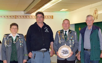 Nun blieben noch 3 Schützen übrig, die noch keinen Preis erhalten haben. Als erstes ehrte Mundt Bernhard Mohr auf dem 3. Platz und einen Gesamtteiler von 9,9. Über den 2. Platz konnte sich Jörg Jarling (9,8) freuen. Beide platzierten bekamen je ein ¼ Schwein als Preis überreicht. Sieger und damit Schweinekönig wurde mit einen Gesamtteiler von 5,0 Michael Nehrenberg, der sich über ein ½ Schwein als Siegerpreis freuen konnte.