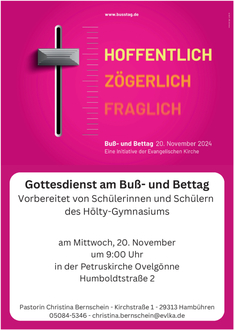 | 9.00 Uhr | Gottesdienst mit dem Hölty Gymnasium |