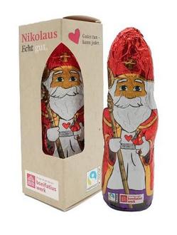 Auch in diesem Jahr bieten wir wieder den Schokoladen-Nikolaus vom Bonifatiuswerk zum Kauf an. Der fair gehandelte Schoko-Nikolaus (60 g Vollmilchschokolade) mit Mitra, Bischofsstab und Herz in der Geschenkverpackung mit Informationen zum heiligen Nikolaus und zur Aktion Tat.Ort.Nikolaus ist das ideale Geschenk zum Nikolausfest. Mit 30 Cent pro verkauftem Nikolaus fördert das Bonifatiuswerk Kinderhospizdienste sowie weitere soziale Projekte für Kinder und Jugendliche. Preis pro Nikolaus: 1,95 €