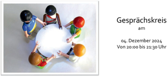 Gesprächskreis: Mittwoch, einmal im Monat um 20.00 Uhr im Gemeindesaal. Nächstes Treffen: 04. Dez. 2024