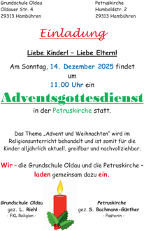| 11.00 Uhr | Familiengottesdienst zum 3. Advent |
