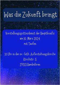 | 10.00 Uhr | Vorstellungsgottesdienst des Konfirmationsjahrgangs 2022/24 – anschließend KV-Wahl |