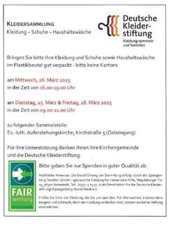 Gemeindesaal. Nächstes Treffen: 07. Mai 2025