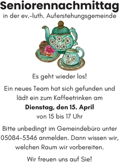 Bitte im Pfarrbüro unter 05084-5346 anmelden