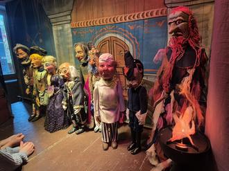 Zum Abschluss durften sich die Kinder die Marionetten noch einmal ganz genau anschauen und einen Blick hinter die Kulissen des Marionettentheaters werfen.