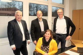 Personen auf dem Foto von links: Bürgermeister Percy Pfeiff, seine Stellvertreter Matthias Koslin und Peter Grüneweg sowie Katja Eiserloh aus der Verwaltung.