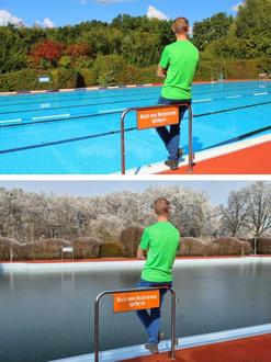 „Die Pflege unserer zwei Hektar großen Anlage ist eine enorme Aufgabe“, erklärt der Badbetriebsleiter Richard Matis. Dazu gehört das Reinigen von Rutschen, Sprungtürmen und Geländern, um Flugrost zu entfernen und neuem Rost vorzubeugen. Auch die Pflege der Grünanlagen ist wichtig: Rasen mähen, Bäume zurückschneiden, Laub entfernen und Neupflanzungen vornehmen. Gleichzeitig werden Wege gereinigt, Unkraut entfernt, Kanten freigeschnitten und Zäune repariert.