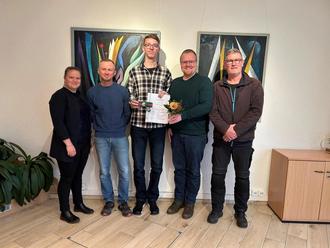 Personen auf dem Foto v. l.: Abteilungsleiterin Franziska Sülz, Badbetriebsleiter Richard Matis, Absolvent Lukas Kasprzyck, Samtgemeindebürgermeister Henning Evers, Schwimmmeister Nils Borchert Foto: D. Aittiarporn/Samtgemeinde Hankensbüttel