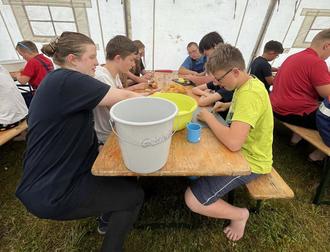 Die folgenden Tage wurden mit allerlei teamförderden Spielen sowie gemeinsamen Abenden am Lagerfeuer verbracht. Beim gemeinsamen Kochen war auch die Geschicklichkeit beim Kartoffel schälen und Gemüse schnibbeln der Kinder und Jugendlichen gefragt.
