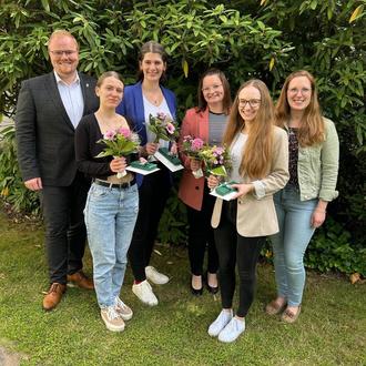 Außerdem schlossen Evelyn Eichberg und Theresa Schulze den berufsbegleitenden Lehrgang zur Verwaltungsfachwirtin mit Erfolg ab und empfahlen sich durch ihre guten Lehrgangsergebnisse und durch ihr Engagement für verantwortungsvolle Positionen innerhalb der Hankensbütteler Samtgemeindeverwaltung. So besetzt Theresa Schulze, die vorher die Stelle der Standesbeamtin innehatte, bereits seit dem 01.12.2023 die Stelle der Abteilungsleitung im Bereich Bürgerservice. Evelyn Eichberg wird zukünftig die stellvertretende Leitung der Abteilung Finanzen übernehmen. Diese Position hatte bisweilen Franziska Sülz inne, die im Herbst auf Bauamtsleiter Heinz Gödecke folgt. Samtgemeindebürgermeister Henning Evers freut sich über die erfolgreichen Abschlüsse: „Unsere Absolventinnen haben mit großer Leidenschaft und tollem Einsatz ihre Ausbildungsziele erreicht. Gut ausgebildetes Personal ist das A und O für unsere tägliche Arbeit in der Verwaltung. Ich bin froh, dass unser offensives Angebot für Aus- und Fortbildung Anklang findet und dass unsere Absolventinnen entsprechende Ergebnisse erzielt haben.“