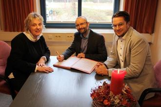 Das Foto zeigt: Bürgermeisterin Katharina Ebeling, den ärztlichen Leiter Dr. Michael Liebetruth sowie Geschäftsführer Stefan Isler.