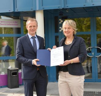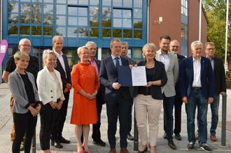 Das Dokument ist eine Million Euro wert. Gerne nimmt Bürgermeisterin Katharina Ebeling den Zuwendungsbescheid aus den Händen von Dr. Holger Spreen entgegen.