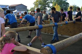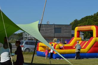 An die Kinder war natürlich auch gedacht worden. Sie hatten viel Spaß beim Zuschauen am Menschenkicker, aber tobten sich auch gerne auf der großen Hüpfburg aus, während die Eltern unter einem Sonnensegel klönen konnten.