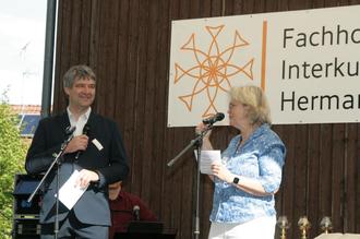 Prof. Dr. Gabriele Beckmann von der FIT Hermannsburg ging auf die Entwicklung auf dem Campus ein und betonte, dass auch die Professoren von den Studenten etwas gelernt hätten. In ihrer Würdigung der akademischen Leistungen der FIT berichtete Prof. Dr. Ulrike Schröder, Lehrstuhl Religionswissenschaften und Interkulturelle Theologie, Theologische Fakultät Universität Rostok, ehemalige Dozentin an der FIT Hermannsburg, dass die FIT neue Forschungsprofile hervorgebracht habe. Selbst Forschungsthemen der Deutschen Forschungsgemeinschaft (DFG) habe die FIT bearbeitet. „Der Campus in Hermannsburg wird zwar geschlossen, aber die interkulturelle Theologie bleibt“, schloss die Professorin ihre Ausführungen.