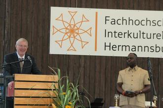 Kurze Einblicke in die Geschichte der FIT gab auch Prof. Dr. Dr. Frieder Ludwig, Professor of Global Studies and Religion an der VID in Stavanger, Norwegen und Gründungsrektor der FIT, der hervorhob, dass die FIT Hermannsburg etwas geleistet habe. Auch Pastor Prince Ossai Okeke, Referent für internationale Gemeinden und Vorsitzender des African Chrisian Council Hamburg e.V., FIT-Alumnus der ersten Stunde, berichtete von einem guten Start der FIT 2012 und sprach in diesem Zusammenhang von einem „Dream-Team“ und bedauerte, dass leider der Campus in Hermannsburg aus finanziellen Gründen geschlossen werden muss.